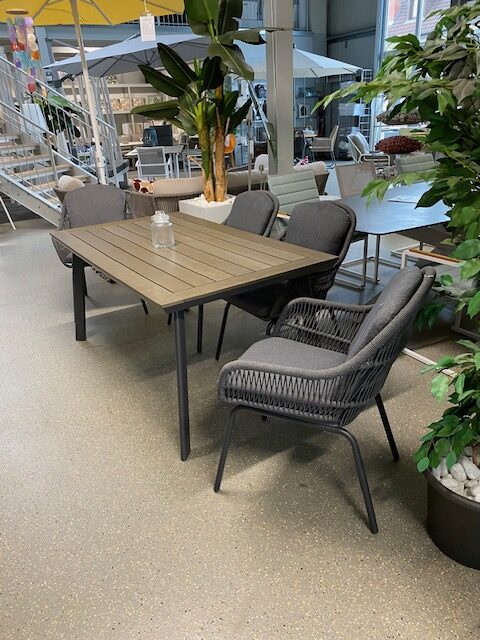 Alu Rope Essgruppe, 4 Sessel mit Kissen, 1 Tisch 160x90cm kompl. 1674,- Angebot 990,-