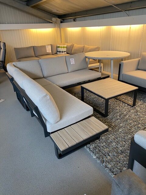 Hochwertige Alu Lounge 273 x 273 cm anthrazit mit Wasserabweisendem Sensotex Stoff  alle  Auflagen und Tisch 80x80cm  3595,- Angebot   2885,-     Sessel  498,-